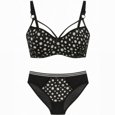 ست طرح بابونه کد ۲۹۲ با جنس میکرو نرم و لطیف، فنردار و هارنس‌دار، دارای فاق نخی و پشت توری است. مناسب استفاده روزانه با سایزبندی ۷۵ تا ۹۰. ترکیبی از راحتی و زیبایی در طراحی خاص گل‌های بابونه.
