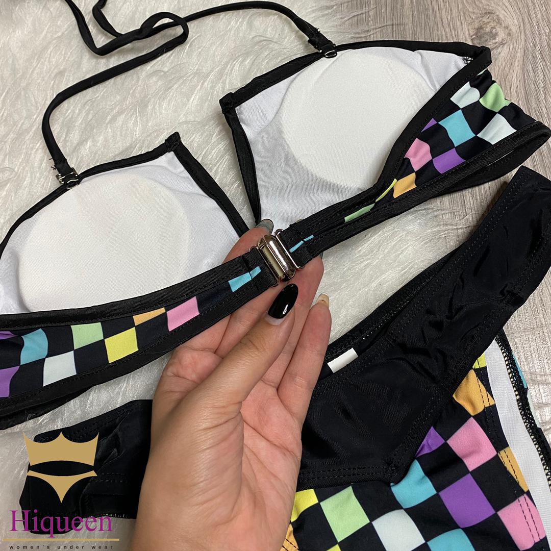 این ست بیکینی جنس و کیفیتی عالی دارد و بسیار راحت می شود از آن استفاده کرد به گونه ای که بعد از پوشیدن چیزی حس نمی کنید انگار وجود ندارد و طرحی پالت رنگی این محصول باعث جذابت بیشتری شده است   .