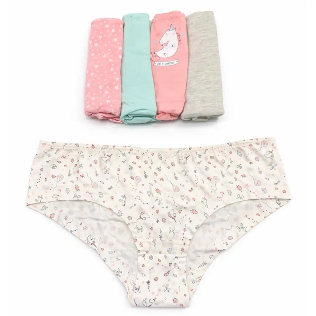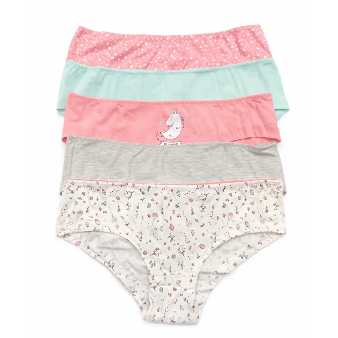 * پک فانتزی و خوش‌رنگ: این مجموعه شامل ۵ عدد شورت با رنگ‌های ملایم (صورتی، آبی روشن، طوسی و سفید) و طرح‌های محبوب یونیکورن، الماس و ستاره است.